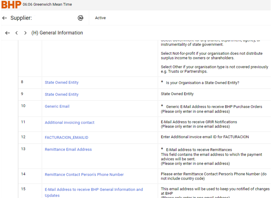 Actualice los datos de su empresa en el sistema GCMS de BHP. Vea este vídeo y obtenga ayuda del equipo de Vendor Master de BHP si para cualquier duda o problema de acceso