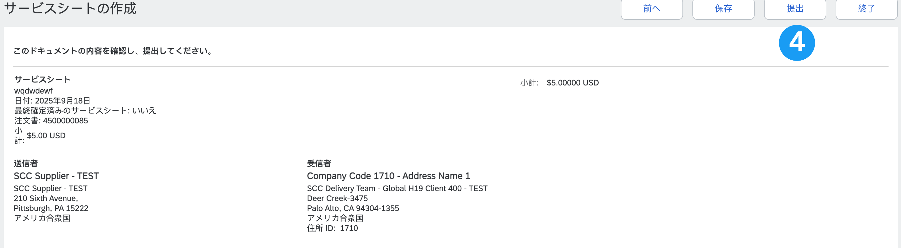 サービスオーダーサービスオーダーは、企業がサプライヤまたはサービスプロバイダに特定のサービスを申請および承認するために使用するドキュメントです。物理的な商品の調達を伴う品目発注とは異なり、サービス PO は保全、修理、コンサルティング、その他のプロフェッショナルサービスなどの無形サービスの取得に重点を置いています。 商品オーダーと同様に、顧客によっては、サプライヤがオーダー確認 (OC) でサービスオーダーをすぐに確認するように要求する場合があります。この確認により、注文書条件の承認が検証され、貴社と顧客の間の調整が確保されます。オーダー確認 (OC) の詳細については、商品オーダーページに記載されている説明を参照してください。 さらに、サービス完了時に、サービス PO と共に、サービスエントリーシート(SES)の提出を求められる場合があります。SESは、提供されたサービスの記録として機能し、実施されたサービスの種類、期間、費用、その他の関連情報が詳細に記載されます。SESは、サービス実績のモニタリング、予算管理、正確な請求書発行および支払プロセスの促進に不可欠です。 商品オーダーのプロセスと同様に、サービスオーダーの状況は、完了状況に基づいて変わる場合があります。サービスが部分的に完了した場合、注文書の状況が「サービス一部提供済み」に更新され、完全に完了すると「サービス提供済み」に更新されます。 通常どおり、サービス調達に必要な書類や手続きに関して、顧客から提供された特定の指示に従うことが重要です。これにより、顧客の要件に従ってサービスオーダーの処理を円滑に行うことができます。 スタンダードアカウントを使用している場合は、このページにアクセスするか、このビデオプレイリストで専用の手順を確認することもできます。 サービスオーダーサービスオーダーを見つけて確認するの特定および確認 サービスオーダーを見つけて、「処理」列の下にある「サービスシートを作成」をクリックします。または、オーダー番号をクリックしてサービス注文書を表示し、オーダーの上部または下部にある「サービスシートを作成」ボタンをクリックします。