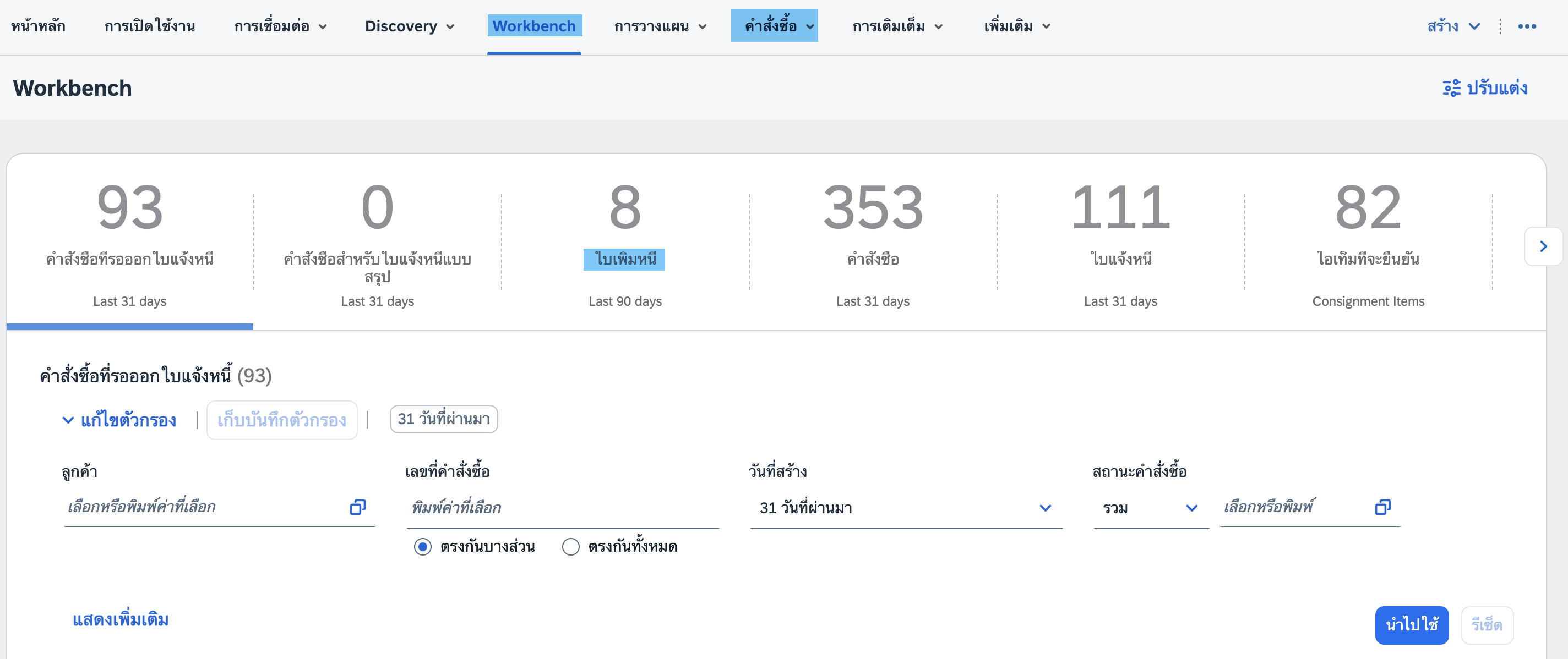 ภาพรวมของเวิร์กเบนช์ใบเพิ่มหนี้