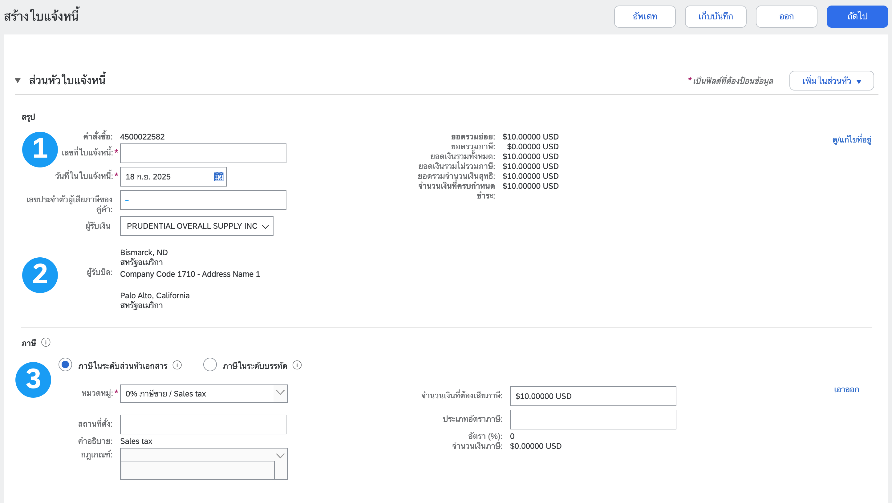 - กรอกข้อมูลในใบแจ้งหนี้ของคุณตามขั้นตอนปกติ