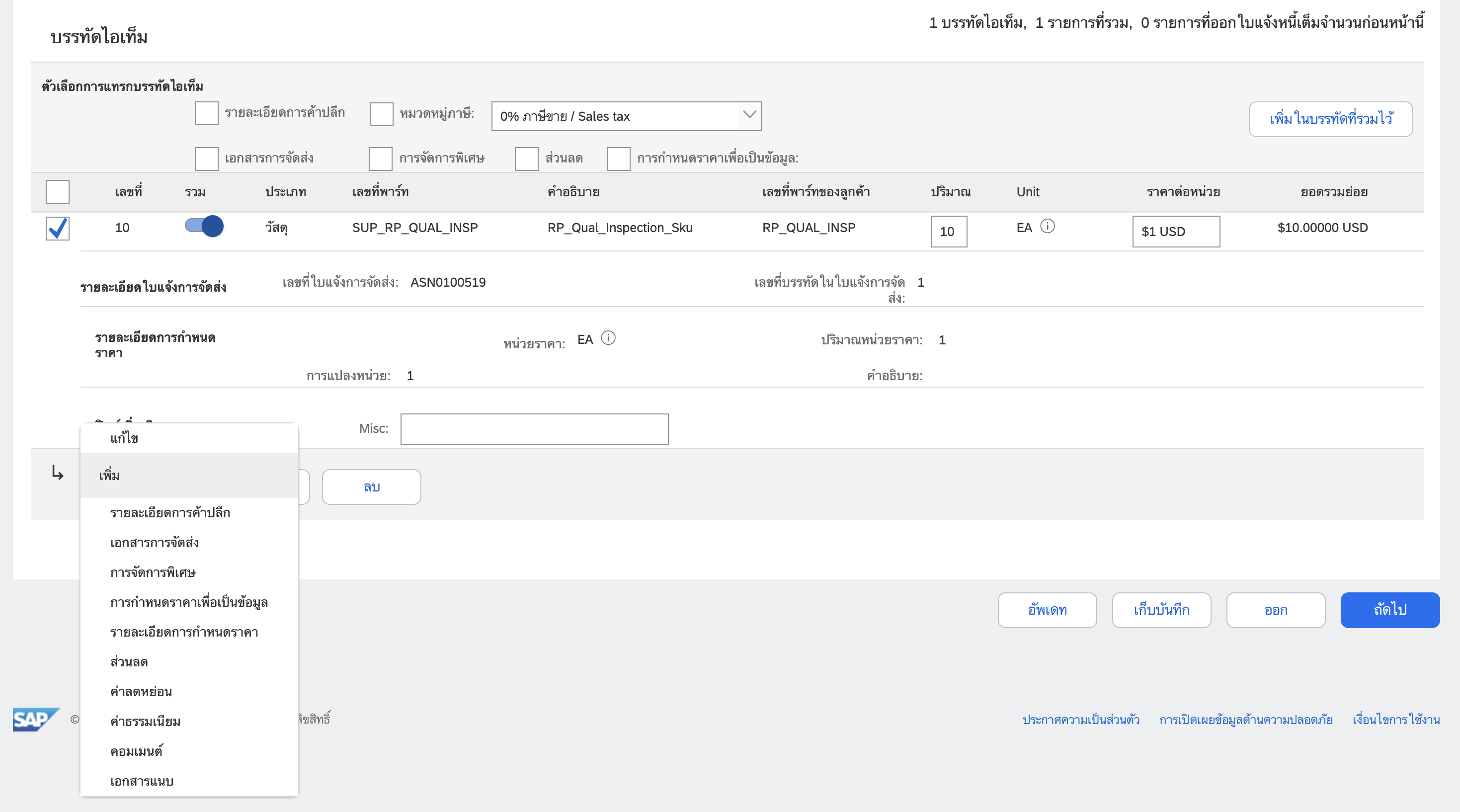 คุณสามารถเพิ่มหรือแก้ไขข้อมูลเพิ่มเติมในระดับบรรทัดไอเท็มได้