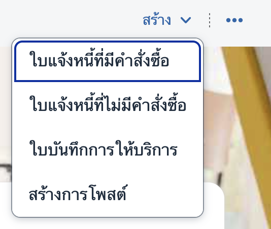 - คลิกสร้างใบแจ้งหนี้ > ใบแจ้งหนี้มาตรฐาน