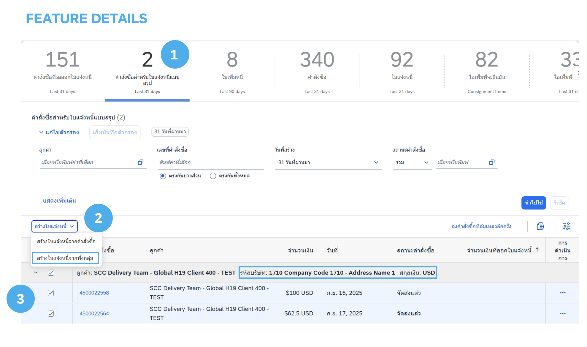 1.คลิกที่ไทล์ “คำสั่งซื้อสำหรับใบแจ้งหนี้แบบสรุป”