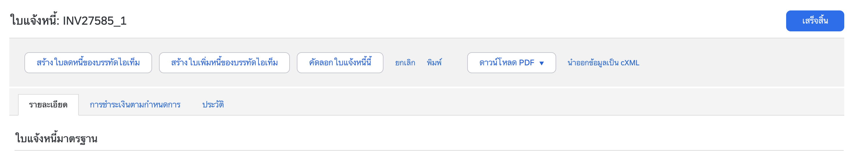 - ประวัติและคอมเมนต์เกี่ยวกับสถานะของใบแจ้งหนี้จะแสดงขึ้น