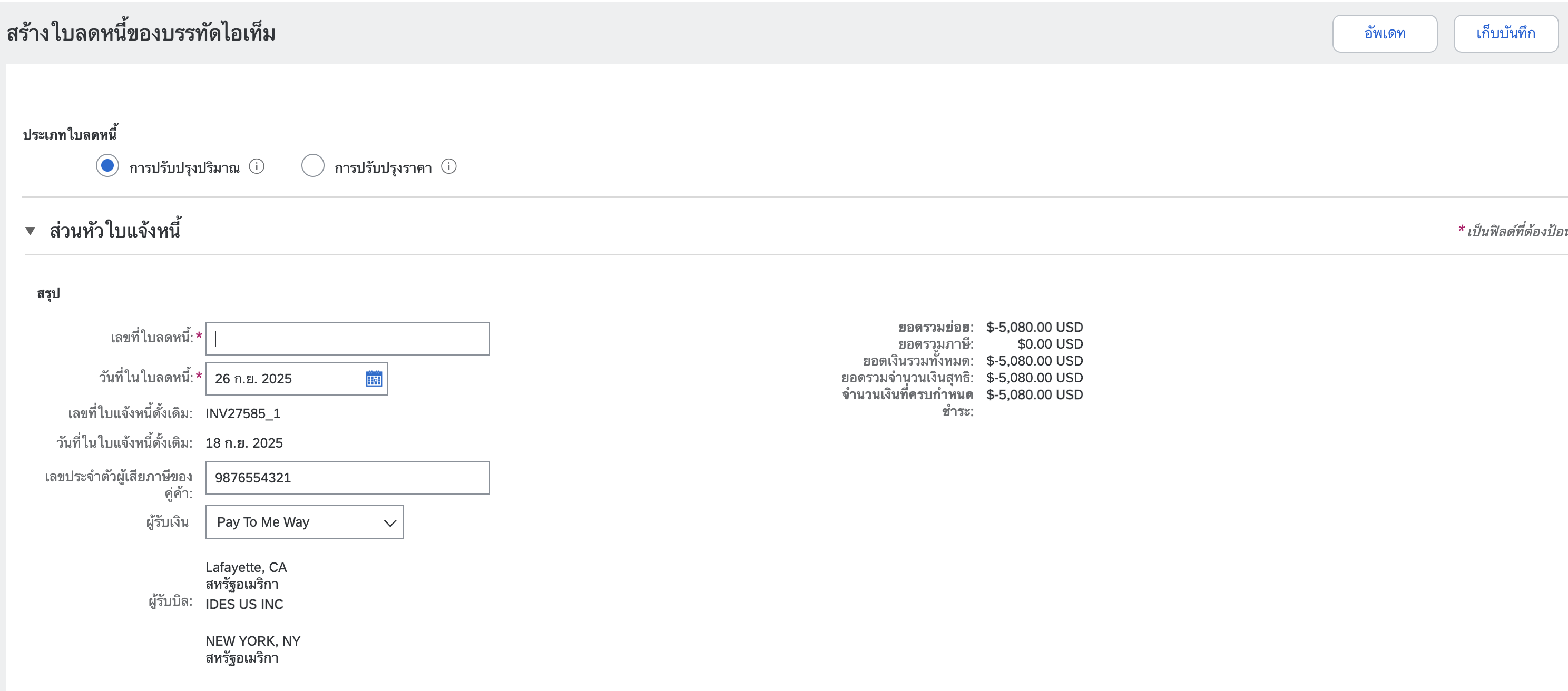สร้างใบลดหนี้ระดับบรรทัดไอเท็ม