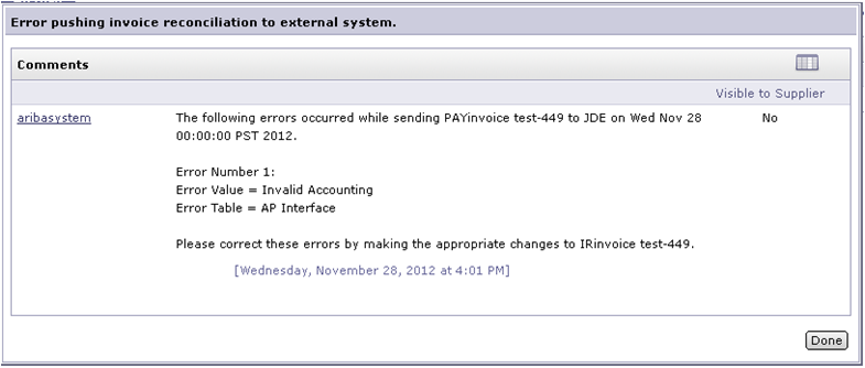 실패한 송장에 대한 오류 처리 개선 기능 설명서에는 Oracle®, SAP® 및 PeopleSoft® ERP 시스템에서 거부된 송장에 대한 새 기능을 통합하기 위한 지침만 포함됩니다.