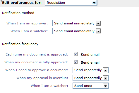 - When my approval is overdue : The notification frequency after the document is escalated.