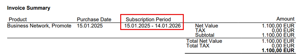 Vous pouvez vérifier la période d'abonnement sur la facture comme partagé ci-dessous.